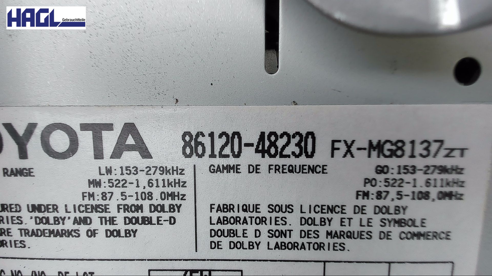 | Ersatzteilbezeichnung | Radio |