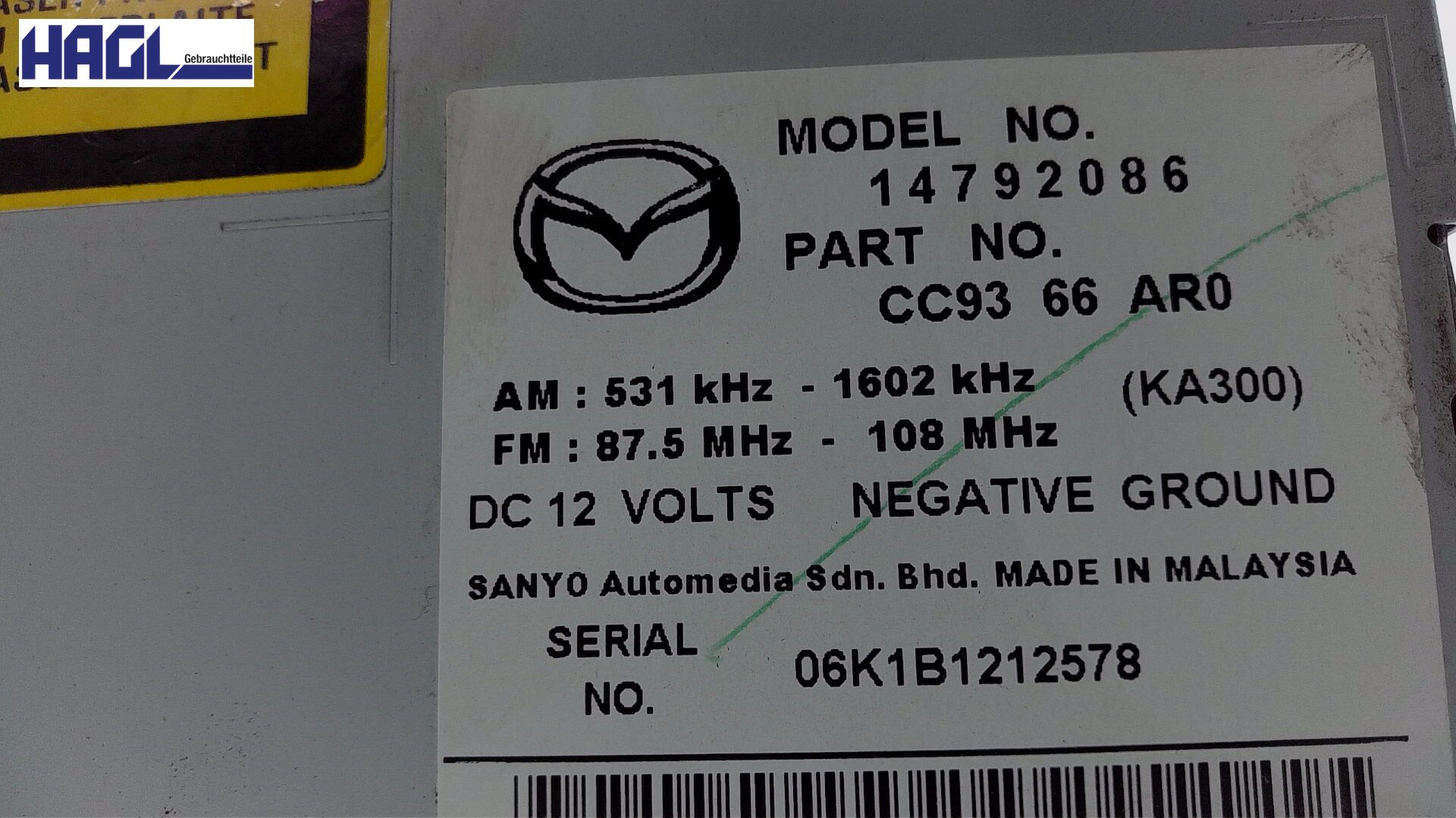 | Ersatzteilbezeichnung | Radio MODEL 14792086 |