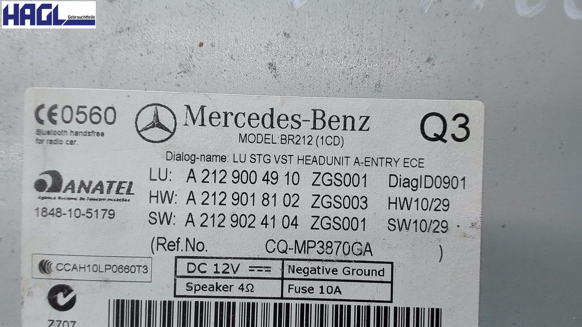 | Ersatzteilbezeichnung | Radio |