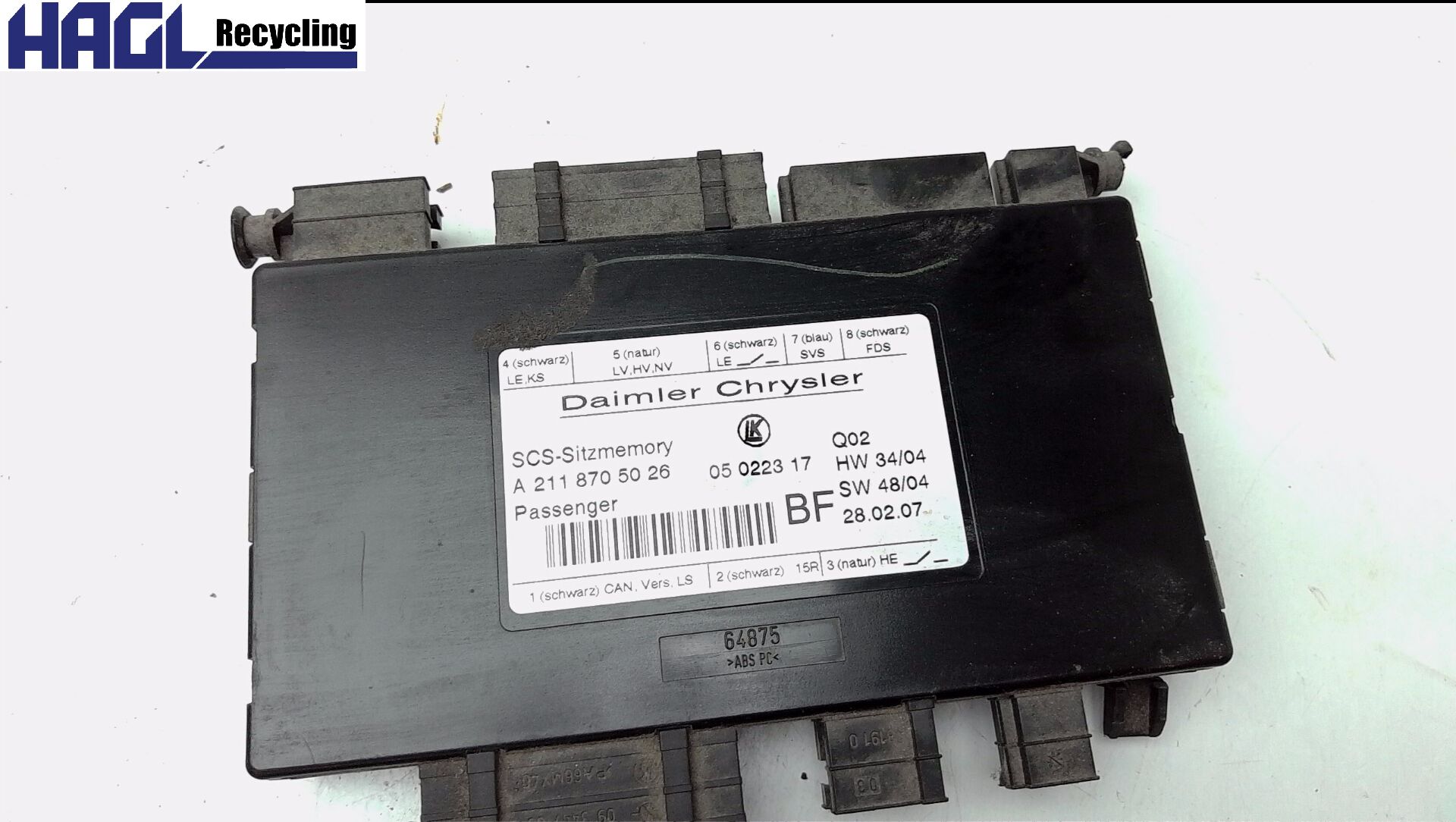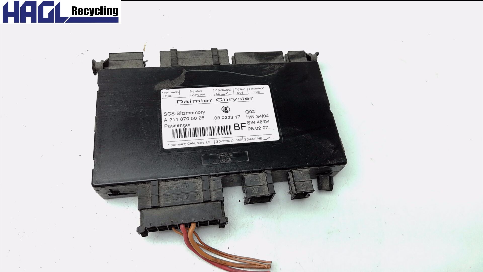 | Ersatzteilbezeichnung | Steuergerät Sitzverstellung 1. Reihe RECHTS |