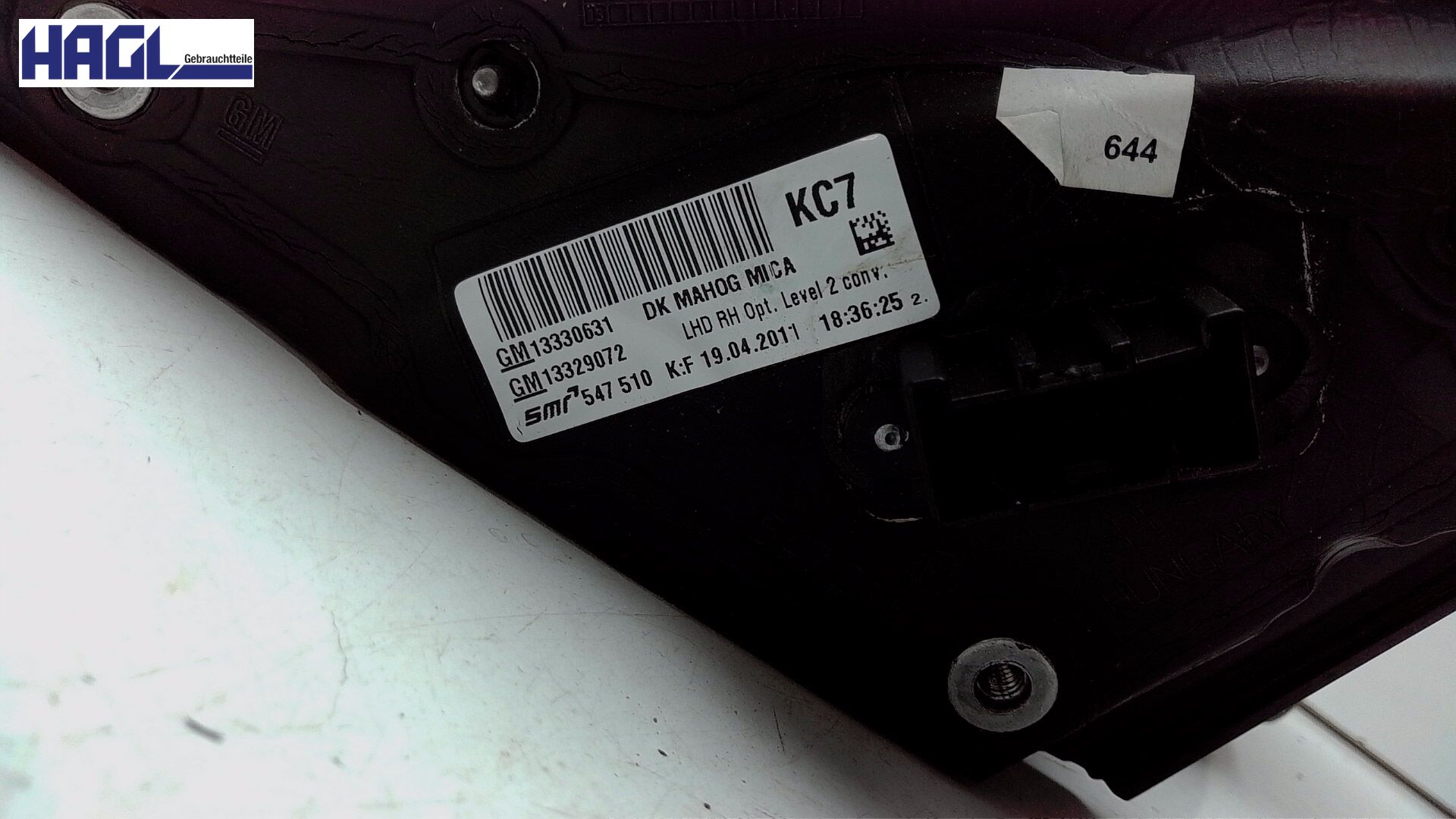 | Ersatzteilbezeichnung | Aussenspiegel elektr. verstell-/heizb. RECHTS |