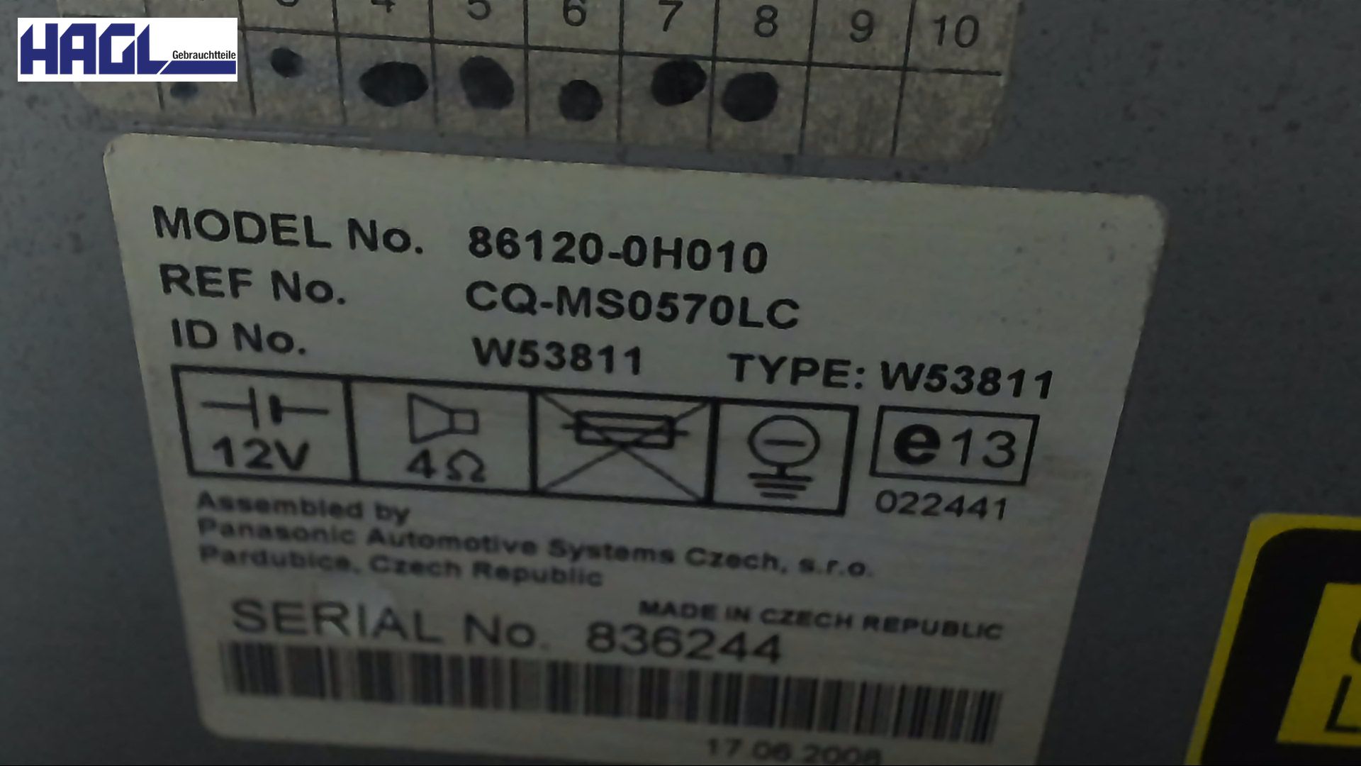| Ersatzteilbezeichnung | Radio |